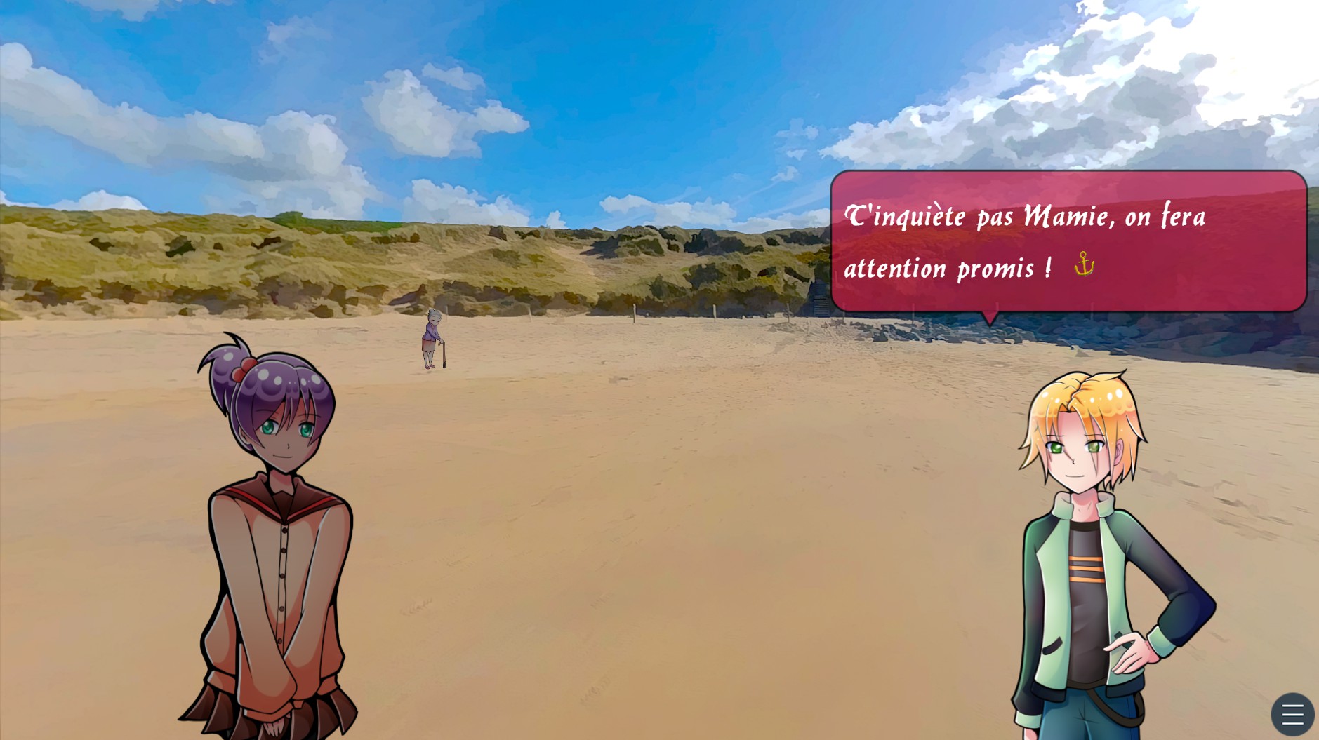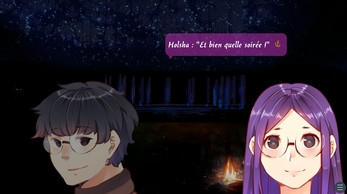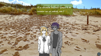 NB : le Visual Novel est une expérience enrichie avec de la musique et de petites animations et offre le choix complet de toutes les visites écrites à ce jour... cependant les graphismes des décors y sont plus bruts que dans les BD, qui ont été retravaillées de ce point de vue. Par contre les personnages sont quasi identiques entre le VN et les BD. Sur la droite de cette page, les captures d'écran du VN sont suivies de quelques pages de BD, on peut donc voir les différences graphiques.